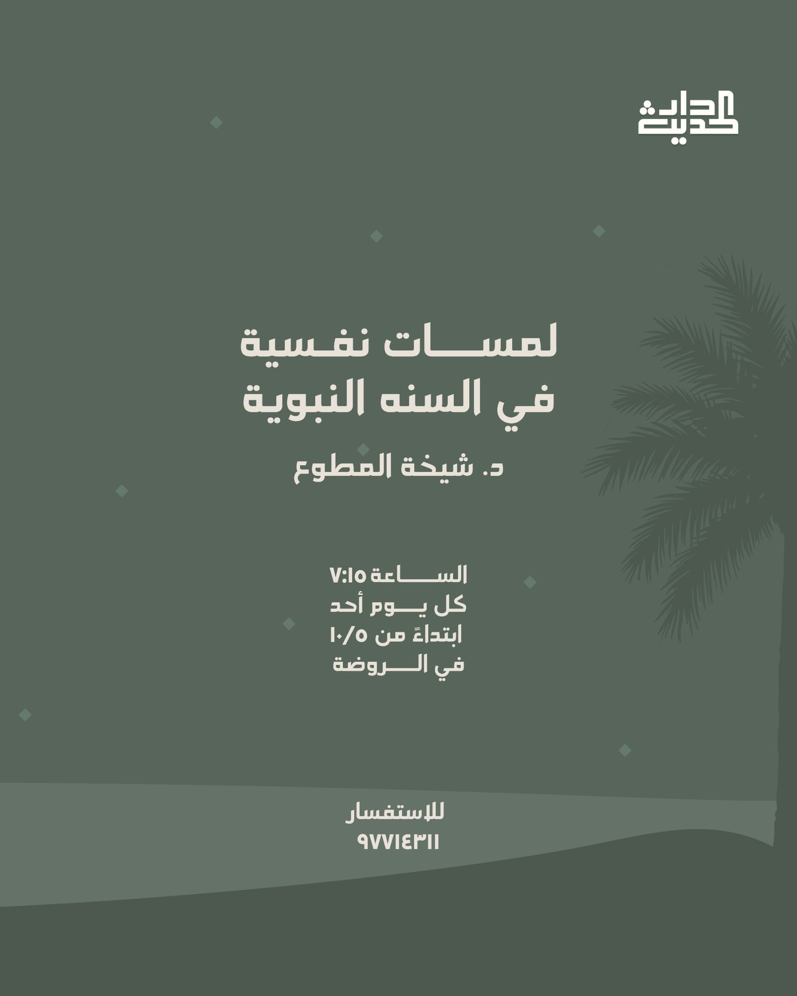 الساعة 7:15 كل يوم أحد ابتداءً من 10/5 في الروضة